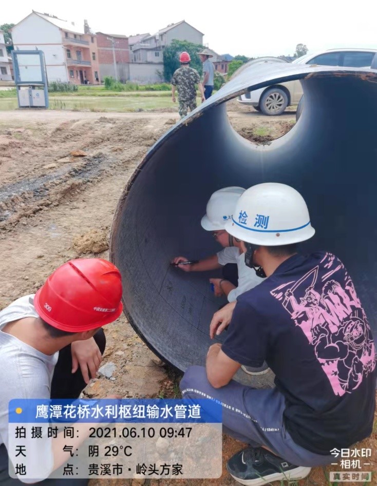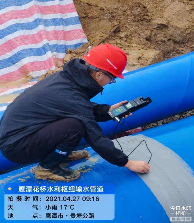 我公司受中國(guó)安能集團(tuán)第二工程局有限公司委托對(duì)金屬結(jié)構(gòu)與機(jī)電設(shè)備安裝質(zhì)量進(jìn)行檢測(cè),檢測(cè)工作任務(wù)繁重,單就供水管線從電站尾水池取水至配水站長(zhǎng)度達(dá)37.86公里,采用雙管供水,其中前32.5Km為直徑1400mm的球墨鑄鐵管,后5.360Km為直徑1200mm的球墨鑄鐵管,局部跨河、道路等障礙物采用鋼管。需要檢測(cè)的內(nèi)容多:焊接鋼管、球墨鑄鐵管、螺栓螺母緊固件、焊接材料、防腐涂料、彎頭三通等管件、閥門密封件等等;涉及檢測(cè)的項(xiàng)目廣:產(chǎn)品外形尺寸、材料力學(xué)性能、化學(xué)成分、金相分析、焊縫無損探傷、涂層檢測(cè)、犧牲陽極保護(hù)陰極電位檢測(cè)、水壓試驗(yàn)等等。